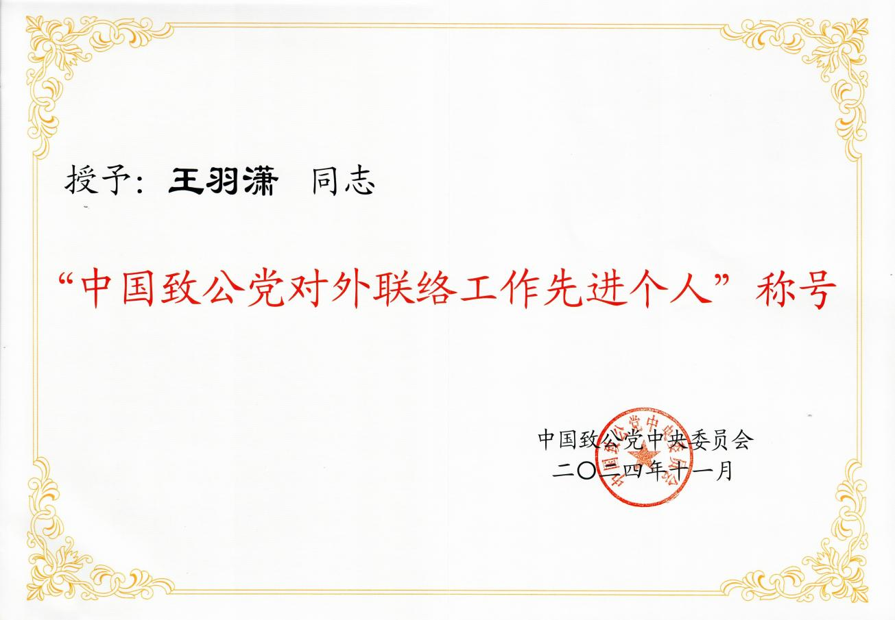 致公党党员王羽潇荣获致公党中央先进个人表彰