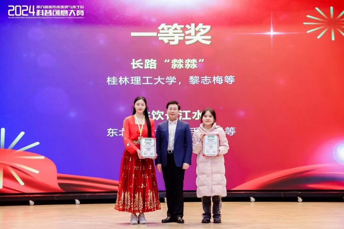 学生获得第六届城市水环境与水生态科普创意大赛全国一等奖,我校名誉校长、中国工程院曲久辉院士为获奖学生颁奖